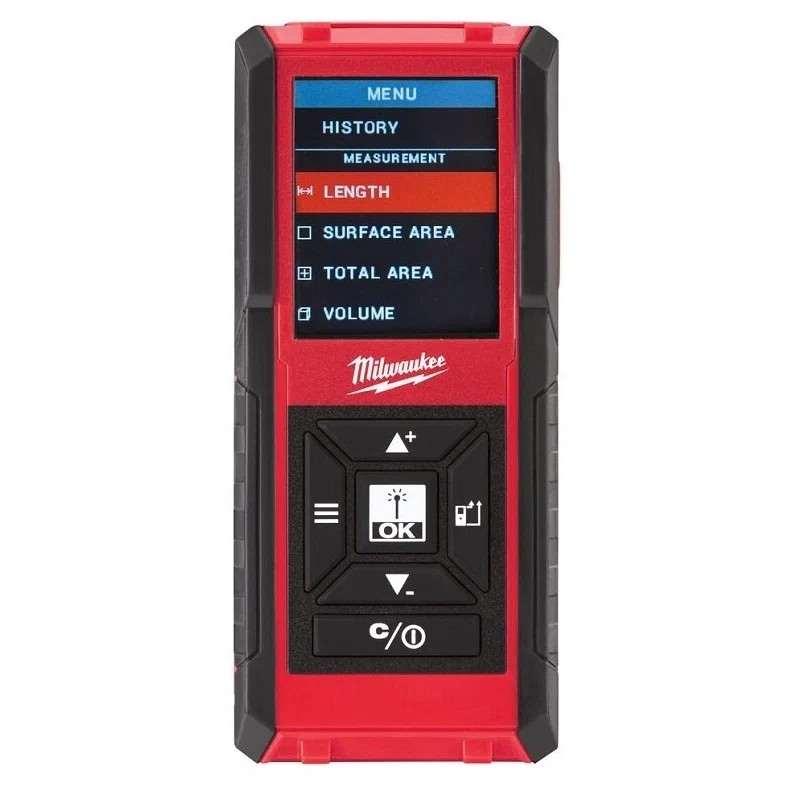 БрендMilwaukeeЦвет товаракрасныйТиплазерныйДальность измерения (без отражателя)100 мМинимальное расстояние измерений5 смКоличество точек начала отсчета4Тип питаниябатарейкиТочность измерения1.5 ммКоличество сохраняемых замеров30Резьба под штативестьВес140 гФункции и особенностиВычисление объема, Вычисление площади, Непрерывное измерение расстояния, Построение уровня/плоскости, Сложение и вычитание площадейКласс лазера2Длина волны635 нмКласс защиты (IP)IP54В комплекте2 батареи ААА, Коробка., Лазерный дальномер, Нейлоновая сумкаДополнительная информациятрехстрочный дисплей, откидная скоба, самовыравнивание, чехол, 113x48x31 ммДополнительноДальность измерения, м100Погрешность измерения±1.5 мм