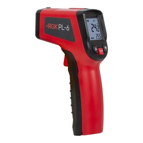 Пирометр RGK PL-6 используется для получения значений температуры трубопроводов, батарей, котлов, двигателей, электропроводки и т.д.
