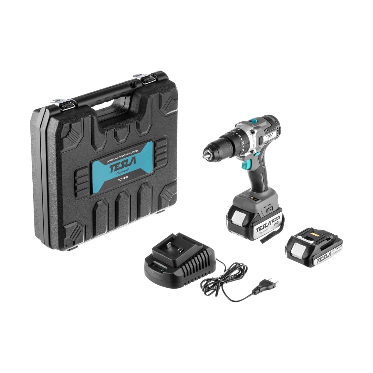 Аккум.дрель TESLA TCD18HD 18В 2x4/2Ач LiION 13мм 0-400/0-1500об/мин 70Нм 1ч кейс