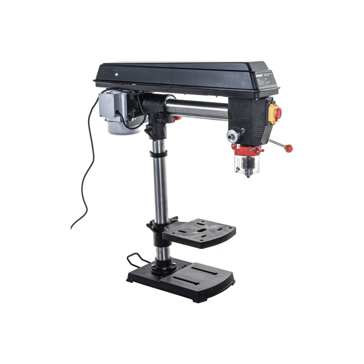 Радиально-сверлильный станок Gigant DPJ-550 представляет собой удобный инструмент с высокой мобильностью сверлильной головки. Это позволяет работать с крупногабаритными деталями, в том числе и специальными сверлами. Благодаря регулировке высоты его можно поднять до 95.25 мм относительно шпинделя или опустить до 336.55 мм. Это обеспечивает более широкий диапазон для обрабатываемых деталей. Модель оснащена прочным металлическим корпусом и возможностью регулировки количества оборотов в широком диапазоне, что удобно при сверлении отверстий диаметром от 3 мм и более.