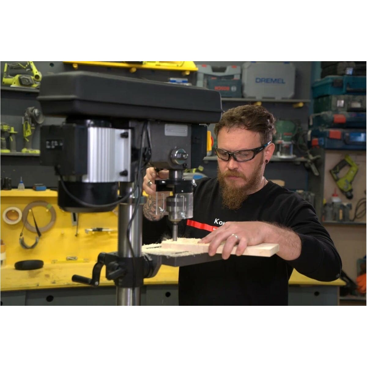 Для защиты оператора от опилок и стружек на патрон Gigant DP1016 надет прозрачный экран.