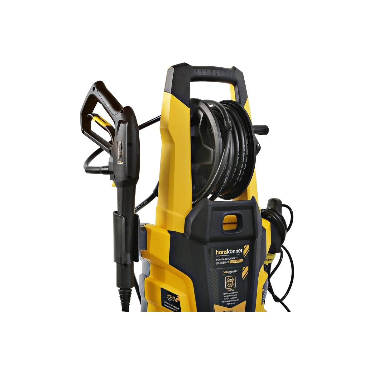 Мойка высокого давления Hanskonner 250 0Вт, 190 бар, ШВД-10м,барабан для шланга HPW9225R поможет без особого труда добиться идеальной чистоты и блеска там, где присутствуют загрязненные поверхности.