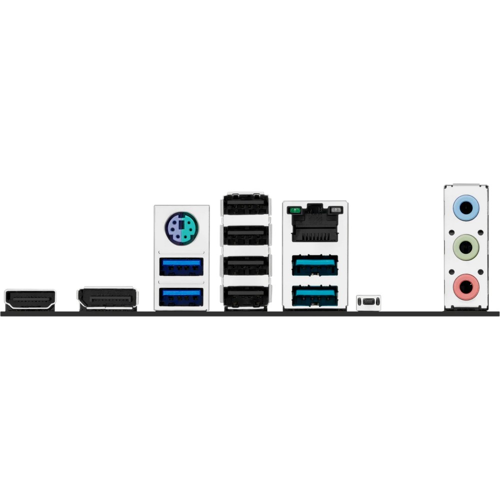 PS/2, 4 x USB 2.0, 2 x USB 3.2 Gen1, 2 x USB 3.2 Gen2, HDMI, DisplayPort, RJ-45
