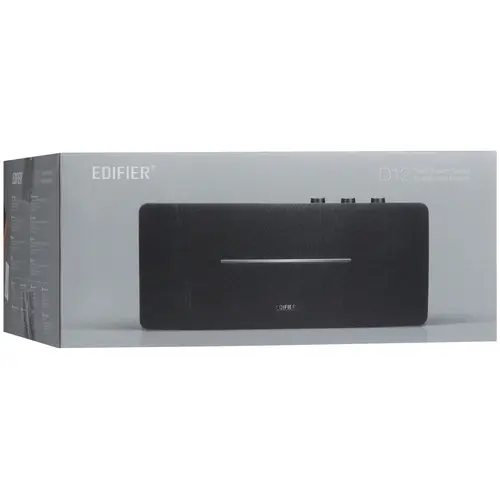Аудиосистема Edifier D12 заключена в корпус из МДФ и ткани, конструкцией которого предусмотрено 4 стереодинамика. Светодиодный индикатор информирует о работе аксессуара. При синхронизации с внешними устройствами используется интерфейс Bluetooth или разъем 3.5 Jack.
