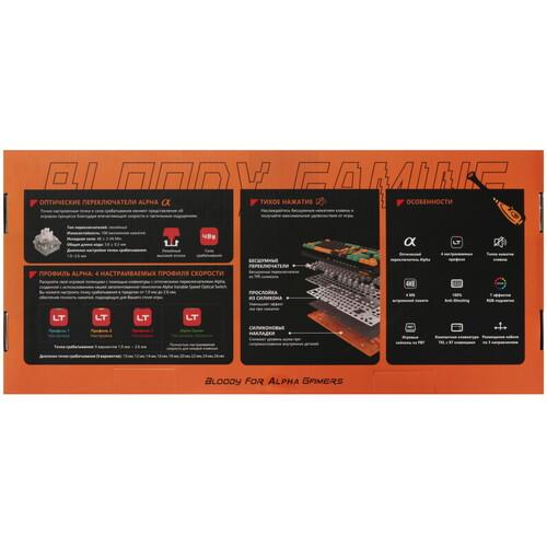 Оптомеханическая клавиатура проводная A4Tech Bloody AT87 Renegade серого цвета является полноразмерной. Она предназначена для любителей играть в видеоигры. Модель имеет RGB подсветку клавиш, цвет которой можно легко поменять. Шумоизоляция корпуса позволяет снизить шум от нажатия клавиш.