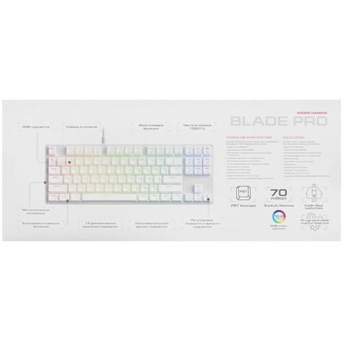 Клавиатура проводная ARDOR GAMING Blade PRO оборудована RGB-подсветкой, которая позволяет выделяться среди периферии. Мгновенный отклик на касания пользователя гарантируют переключатели Kailh Red. Клавиши обладают русской и английской раскладкой. Металлический корпус долговечен и не подвержен образованию повреждений.