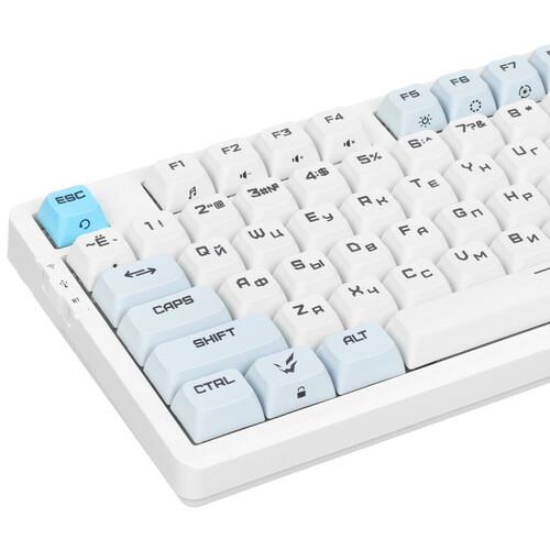 Клавиатура проводная + беспроводная ARDOR GAMING Guardian – игровой механический контроллер в белом цвете. 97 клавиш дополнены RGB-подсветкой по области кейкапов с настройкой палитры и эффектов свечения. Благодаря исполнению в формате 95% есть отдельный цифровой блок и доступ к функциям с помощью Fn.