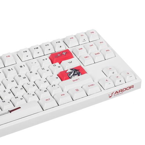 Клавиатура ARDOR GAMING Wakizashi [AG-ZD-87GT-HS-W] выполнена в корпусе белого цвета и дополнена подсветкой с палитрой RGB. Модель с 87 клавишами создана для поклонников компьютерных игр. Клавиатура оснащена механическими переключателями Gateron Mint с укороченным ходом 2 мм, что обеспечивает высокую точность срабатывания в играх. Стабилизаторы обеспечивают легкое и плавное нажатие.