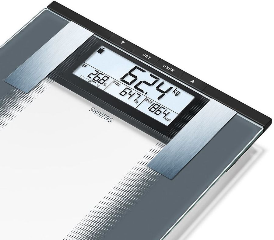 Описание: Помимо измерения массы тела, позволяют оценить содержание в организме воды, жировой, мышечной и костной ткани. Результаты измерений сохраняются в памяти для 10 пользователей. Весы автоматически включаются при касании ногами платформы и автоматически выключаются после схода с нее.