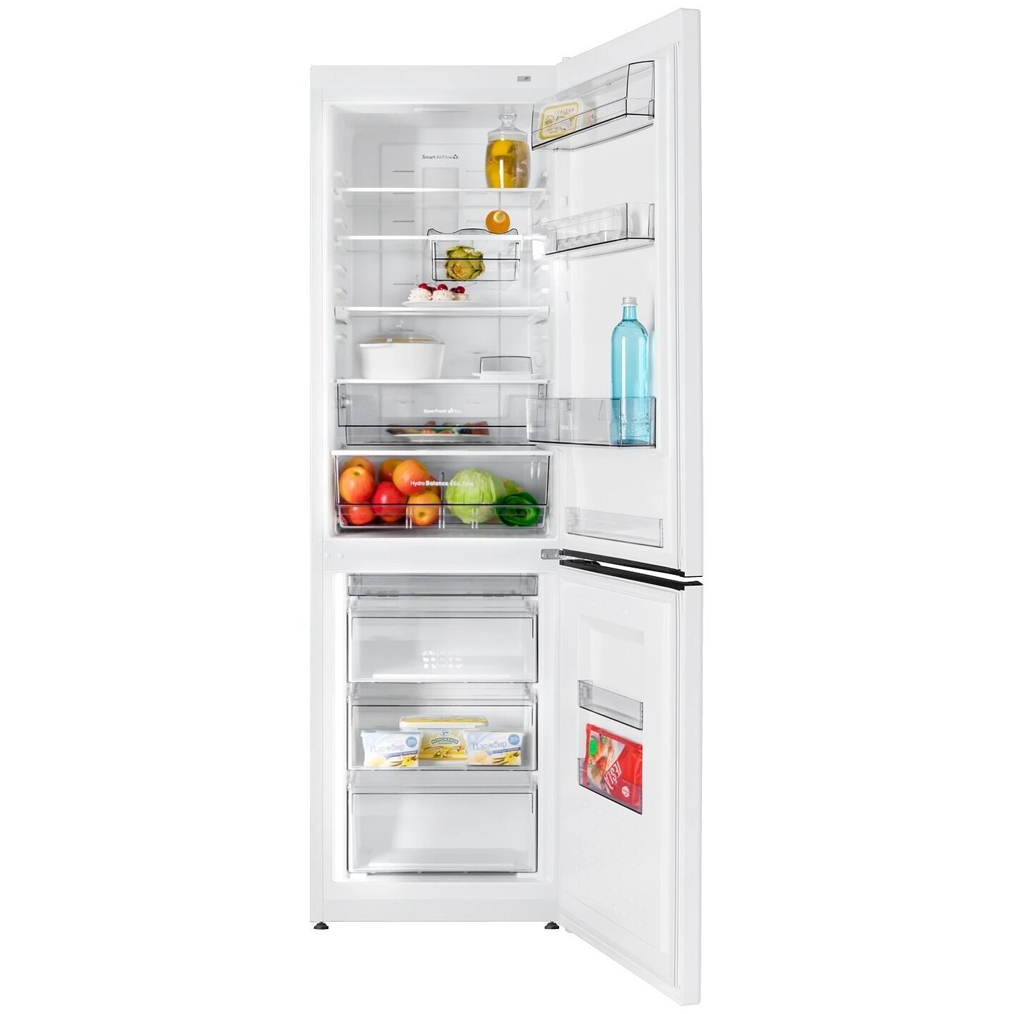 выдвижной подвесной контейнер (Pull Box) - 1 шт., сосуд с регулируемым уровнем влажности (Hydro Balance Zone ) - 1 шт., вкладыши для яиц - 1 шт., масленка - 1 шт., подставка для бутылок - 1 шт., ограничитель для бутылок - 1 шт., емкости SLIM SPACE - 2 шт., поддон для замораживания ягод и других продуктов - 1 шт.