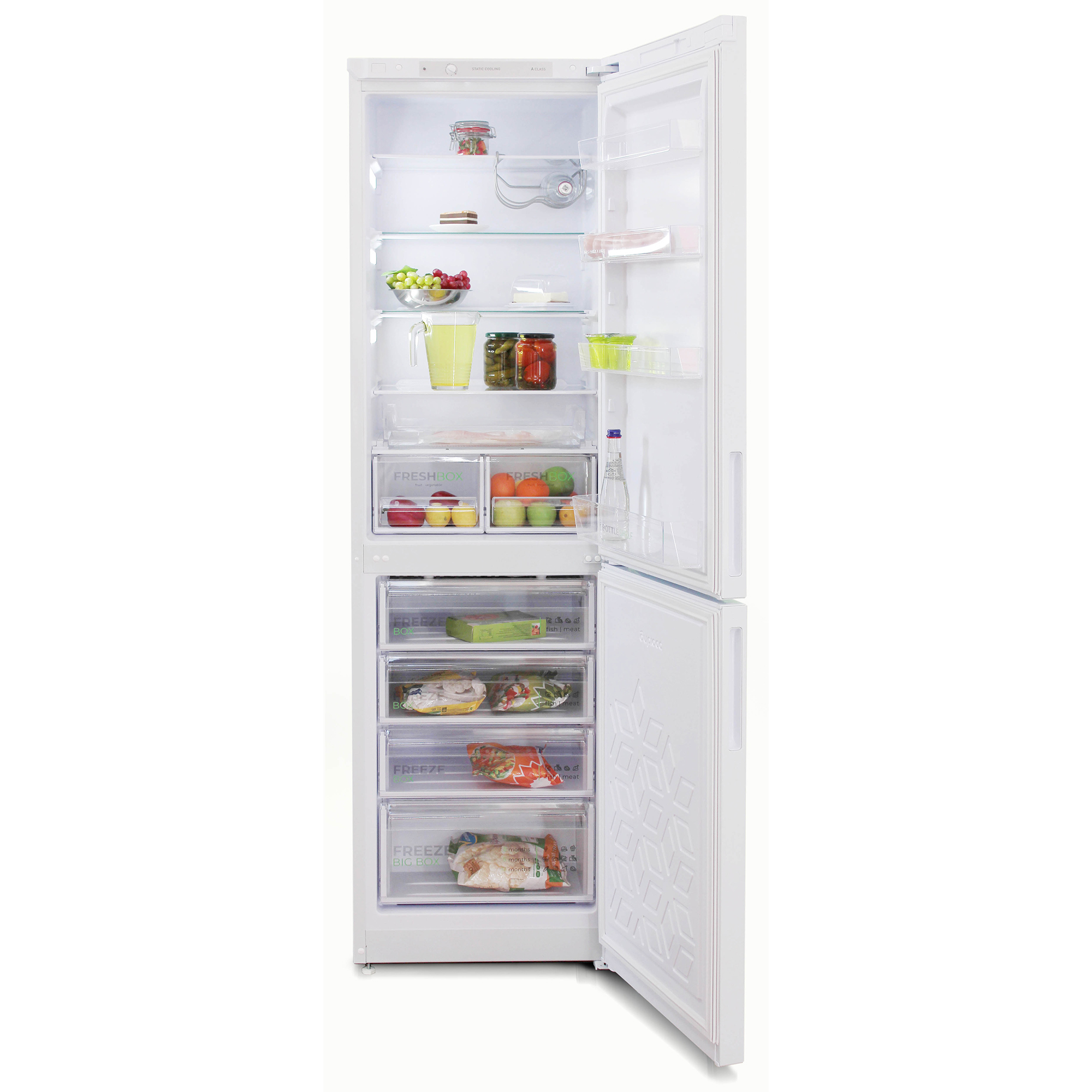 Комплектация Подставка для яиц, масленка, выдвижной лоток, складные полки, полка для бутылок