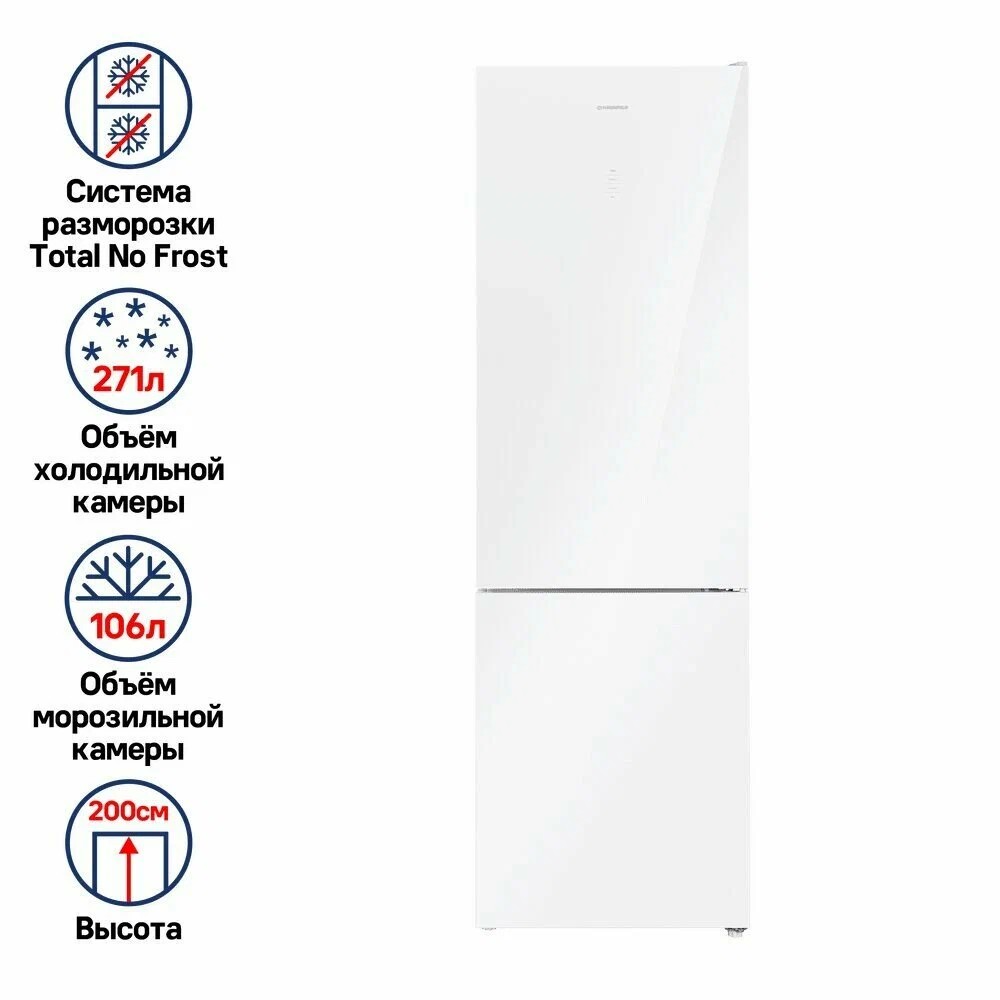 полезный объём, 351 л; полный NoFrost в холодильном и морозильном отделениях; сенсорное управление; материал фасада - стекло