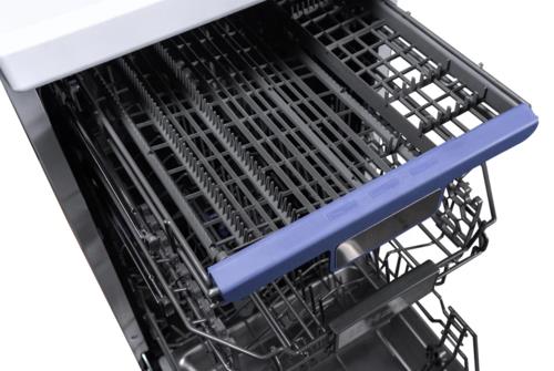 Звуковой сигнал оповестит вас об окончании работы. Индикатор наличия ополаскивателя напомнит о необходимости его добавления. Три корзины позволяют удобно разместить посуду разного размера.