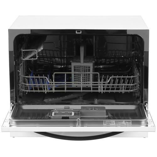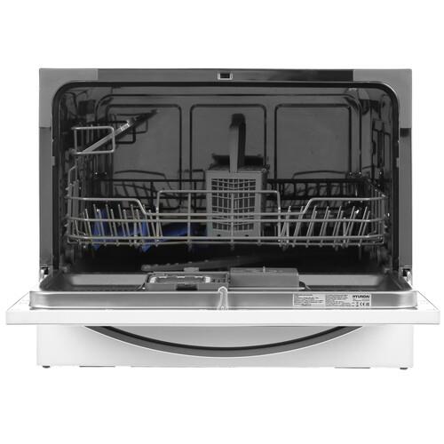 Посудомоечная машина Hyundai DT305 сочетает стильный дизайн, простое управление и широкие функциональные возможности. Обладая компактными размерами, она характеризуется вместимостью 6 комплектов посуды и за один цикл потребляет не более 6.4 л воды. Панель управления с информативным дисплеем и кнопками позволяет легко выбирать необходимые параметры мытья в зависимости от объема и уровня загрязненности.