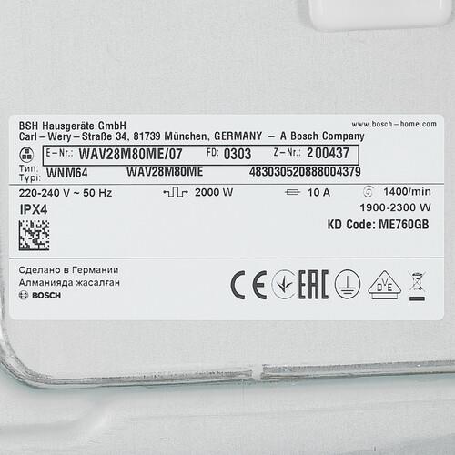 Стиральная машина Bosch WAV28M80ME поддерживает опцию отложенного старта. Она позволяет устройству приступить к выполнению обязанностей в определенный временной отрезок. Система ActiveWater определяет количество вещей и объем необходимой воды. Режим «Чувствительный» обеспечивает тщательное полоскание и устранение аллергенов. Барабан Vario Drum обладает отверстиями тщательно продуманной формы, которые не вредят материалам и эффективно удаляют пятна.