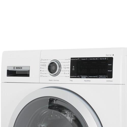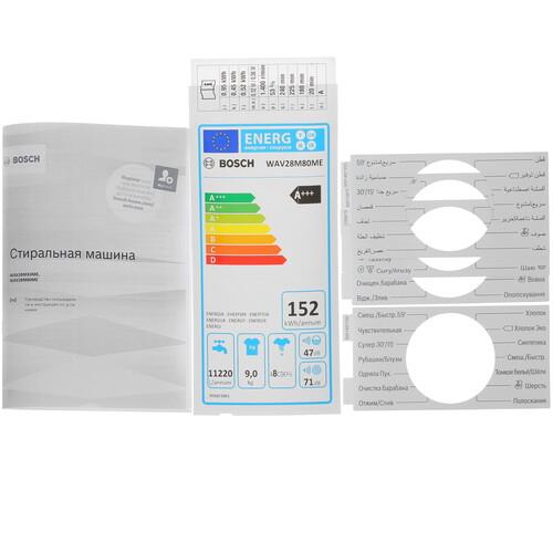 Стиральная машина Bosch WAV28M80ME оснащена инверторным двигателем EcoSilence Drive, который продлевает срок службы и уменьшает показатель шума. Забытые вещи пользователи могут загрузить непосредственно во время работы прибора. Поворотный переключатель и сенсорные элементы открывают доступ к 14 программам. Дисплей уведомляет о заданных настройках.