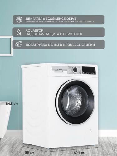 Bosch WGA242X0ME оснащена сенсорными кнопками и поворотными рычагами, удобным дисплеем с отображением всей важной информации. Можно настраивать отсрочку запуска до 24 ч, блокировать панель управления от любопытных детей. Конструкция модели допускает установку в колонну с разными сушильными машинами для экономии места в ванной.