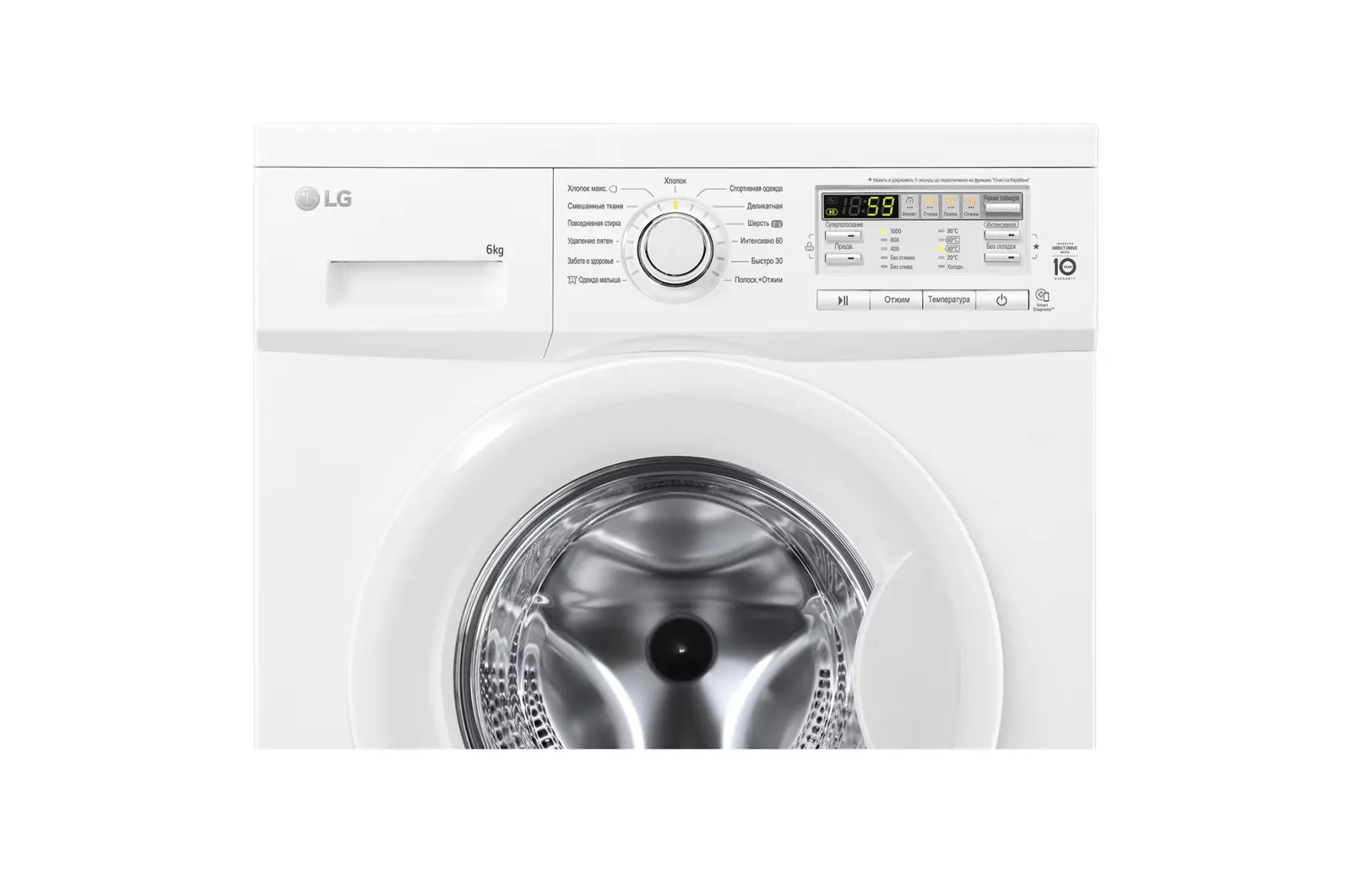 Главным преимуществом этой модели является инверторный двигатель Direct Drive, который крепится непосредственно к барабану без ремней и шкивов. Это решение обеспечивает более тихую работу, уменьшает вибрации и повышает долговечность механизма. Благодаря прямому приводу стирка становится на 30% тише по сравнению с обычными моделями.