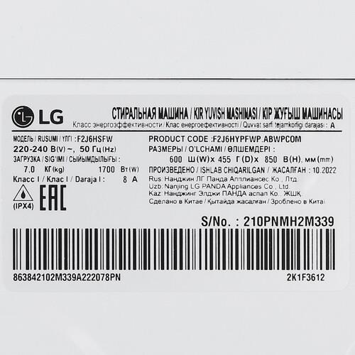 Стиральная машина LG F2J6HSFW – красивая и функциональная модель с фронтальной загрузкой до 7 кг белья. Сенсорные кнопки и поворотный механизм с понятными надписями позволяют выбирать 1 из 14 программ, активировать дополнительные функции. Модель оснащена режимами обработки паром, дозагрузки белья во время стирки и очистки барабана. Модуль NFC позволяет управлять стиральной машиной через мобильное приложение. Функция «Смарт диагностика» помогает вовремя обнаруживать ошибки.