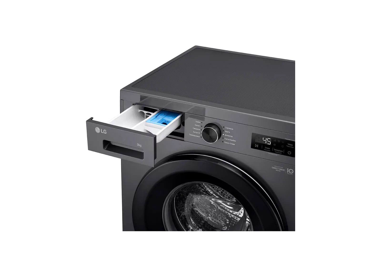 Инверторный двигатель Direct Drive крепится непосредственно к барабану, что обеспечивает более тихую работу, уменьшение вибраций и повышенную долговечность механизма. Эта технология делает стирку на 25% тише по сравнению с обычными моделями.