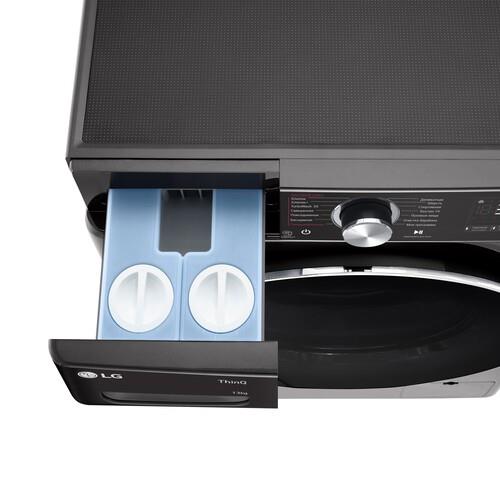 Стиральная машина с фронтальной загрузкой LG F4V9LA2P черного цвета вмещает в себя до 13 кг белья и подходит для семьи из 4-5 человек. 14 программ стирки позволяют подобрать необходимый вариант для любого типа ткани. Инверторный двигатель экономит электроэнергию и работает бесшумно. Процесс стирки можно контролировать через приложение LG ThinQ на смартфоне.