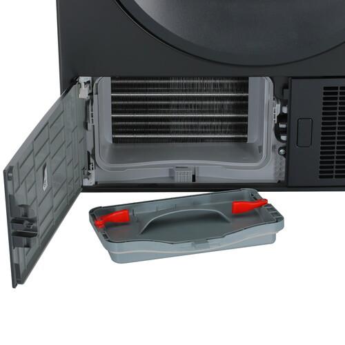 Сушильная машина Beko DF7412GB представлена в черном корпусе с барабаном на 7 кг и тепловым насосом. На передней панели есть поворотный механизм, сенсорные кнопки и дисплей с визуальными индикаторами. Вы можете использовать 15 программ сушки разных типов ткани и дополнительные функции, блокировать управление от детей. Подсветка барабана удобна для изъятия и сортировки мелких предметов одежды.