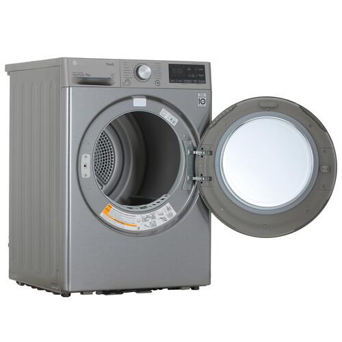 LG DC90V5V9S позволяет загружать до 9 кг белья и оснащена 14 автоматическими программами. Технология Allergy Care помогает избавляться от пылевых клещей при активации программы «Гипоаллергенная». На фронтальной панели расположены дисплей с сенсорными кнопками и поворотный механизм. Управление по Wi-Fi через приложение LG ThinQ позволяет удаленно настраивать параметры и контролировать состояние техники. Система самоочистки исключает необходимость обслуживания – конденсатор промывается до 3 раз за цикл для устранения ворса и пыли.