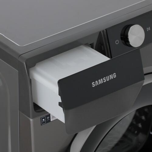 Сушильная машина Samsung DV90T6240LX/LP оснащена инверторным двигателем. Моторы этого типа отличаются малошумностью, низким энергопотреблением и увеличенным ресурсом. Класс энергоэффективности машины – A+++. Среднее потребление энергии за цикл сушки – 1.21 кВт. Работу с машиной упрощает подсветка. Блокировка панели управления полезна при наличии маленьких детей. Машина может устанавливаться в колонну. В дизайне модели сочетаются серый и черный цвета. Размеры машины – 60x85x60 см.