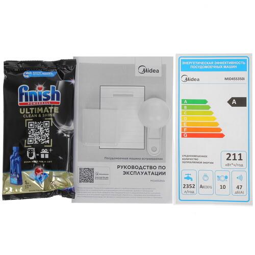 Встраиваемая посудомоечная машина Midea MID45S350i осуществляет бережную очистку столовых принадлежностей из хрупких материалов, снижает расходы на водо- и энергоснабжение, удаляет стойкие пятна. Достаточно выбрать подходящую среди 9 программ. Доступ к параметрам открывается через кнопочную панель или приложение MSmartHome. Заданные настройки транслируются на дисплее.