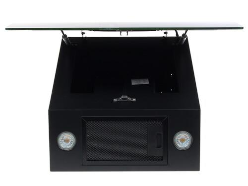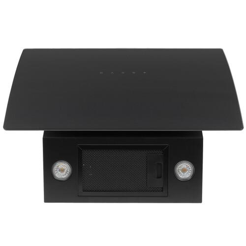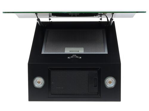 Корпус вытяжки имеет стильный черный цвет. Модель подойдет для установки в кухне любого стиля. Очень удобна функция подсветки, которая реализуется с помощью 2 светодиодных ламп. Лампы очень экономичны: их суммарная потребляемая мощность равна лишь 7 Вт. Стоит отметить низкий уровень шума вытяжки: он равен 54 дБ.