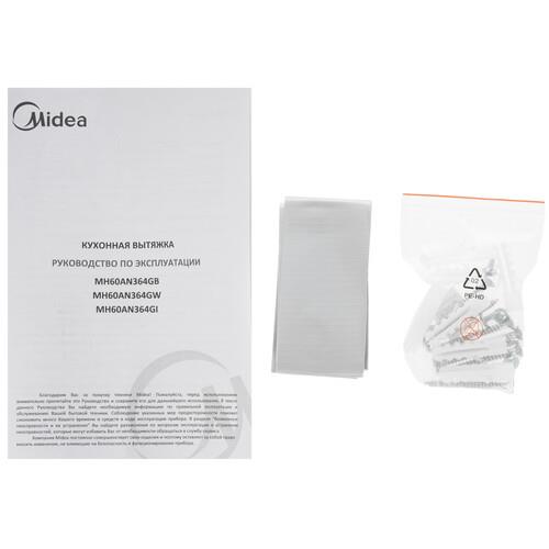 Вытяжка наклонная Midea MH60AN364GW белого цвета выполнена в металлическом корпусе шириной 59.7 см со стеклянной панелью. Дисплей и сенсорные кнопки позволяют удобно регулировать мощность модели. Производительность на уровне 900 м³/ч делает прибор эффективным для очистки воздуха в большом помещении кухни. На входе установлен жировой фильтр из алюминия. Он задерживает частицы жира и копоти, сохраняя чистоту поверхности мотора и воздуховода.