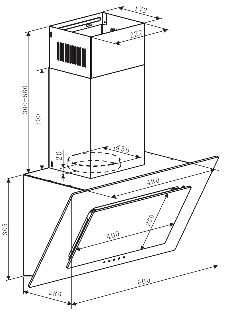 • Диаметр воздуховода: 15 см.
