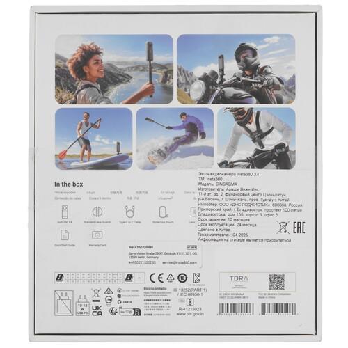 Компактная экшн-камера Insta360 X4 обладает матрицей CMOS 72 Мп, позволяющей снимать видео в формате 8K, и делать впечатляющие фото с разрешением 11904х5952 dpi. Такие кадры радуют яркими и реалистичными цветами, высокой детализацией. Вы можете экспериментировать с функциями таймлапс, HDR, серийной и интервальной съемкой, а также съемкой с задержкой (по таймеру). Беспроводные интерфейсы позволяют управлять камерой со смартфона через приложение Insta360. Благодаря фиксации горизонта, программной стабилизации и продвинутым настройкам Insta360 X4 снимает фото/видео на профессиональном уровне. Модель оснащена сенсорным дисплеем, стереомикрофоном, слотом для microSD-карты до 1000 ГБ и разъемом USB Type-C. Водонепроницаемый корпус допускает подводную съемку на глубине 10 м, с аквабоксом – на 50 м. Емкость АКБ 2290 мА∙ч выдерживает на 1 заряде 135 минут видеозаписи.