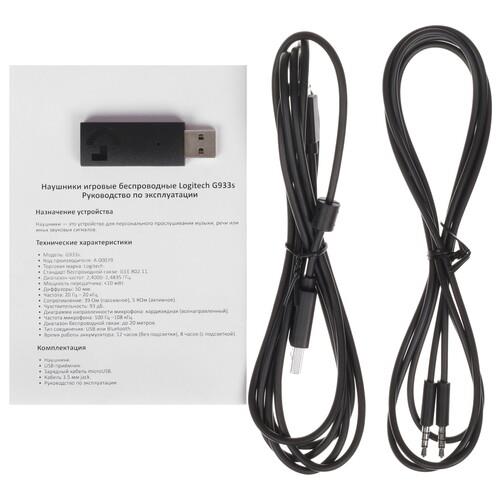 Мягкая обивка оголовья и амбушюр из экокожи способствует комфортному расположению на голове. Аккумулятор гарантирует до 12 часов автономной работы Logitech G933S. Для подключения в проводном режиме применяется аудиокабель с разъемом 3.5 мм.