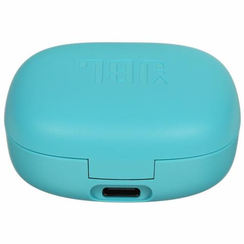 Наушники TWS JBL Wave Flex 2 в синем цвете представлены в виде беспроводных вкладышей с подзарядкой от персонального кейса того же оттенка. В футляре они располагаются горизонтально, а в ушах фиксируются без дополнительного крепления с помощью пластиковых амбушюров.