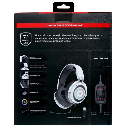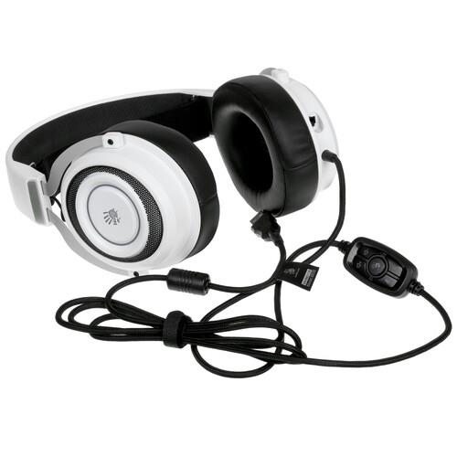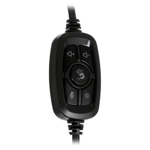 Проводная гарнитура A4Tech Bloody G535 белого цвета с черными вставками изготовлена из высококачественных и долговечных материалов, устойчивых к истиранию. Для комфортного общения во время игр есть микрофон высокой чувствительности на подвижном креплении. Провод в тканевой оплетке длиной 2 м подключается к компьютеру или другим устройствам через USB-разъем. Для комфортного и быстрого переключения на корпусе есть регулятор громкости, включения подсветки и объемного звука.