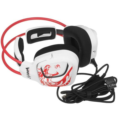 Проводная гарнитура A4Tech Bloody G575 бело-красного цвета с RGB-подсветкой обеспечивает объемное 7.1-полосное звучание, что позволит полностью погрузиться в виртуальный мир игры. 50-мм мембраны излучателей воспроизводят все оттенки низких и высоких частот. Чувствительность в 105 дБ предполагает четкий звук даже на небольшой громкости. Съемный микрофон с гибкой фиксацией имеет кардиоидную направленность и чувствительность в -44 дБ, за счет чего поддерживается четкость голосового общения в шумных местах.