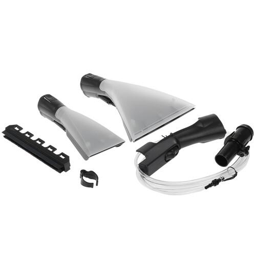 Емкость бака для воды и моющего средства составляет 5 л. Отдельного внимания заслуживает набор насадок и щеток пылесоса Bosch BWD41740. Для полноценной уборки он оснащен большой насадкой для влажной уборки, маленькой – для мытья ковров, для мягкой мебели, щелевой насадкой и насадкой для труднодоступных мест. Еще в наборе предусмотрена компактная и мягкая щетки, турбощетка.