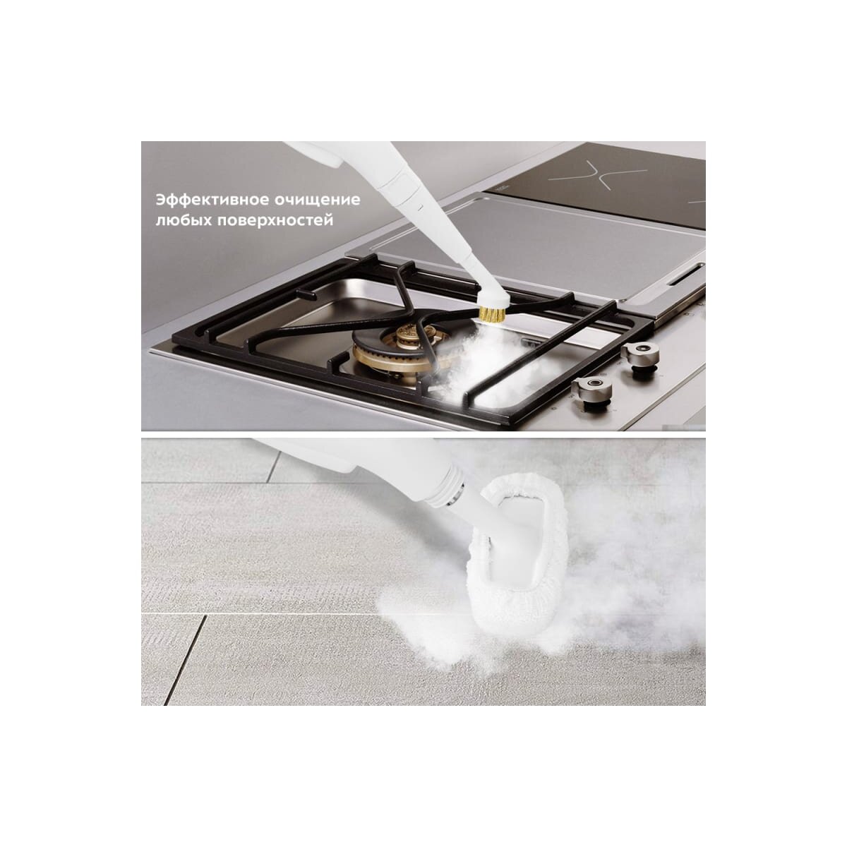 Все необходимые насадки уже в комплекте. Они быстро вернут сияющий блеск плите или варочной поверхности, помогут добраться до труднодоступных мест и многое другое.