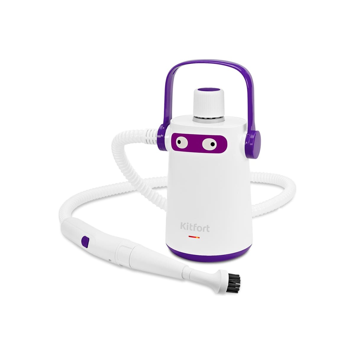 Пароочиститель KITFORT КТ-9109-1 бело-фиолетовый способен заменить дезинфектор, стеклоочиститель и отпариватель для тканей. Главное преимущество пароочистителя — прибор безопасен для здоровья человека и не приносит вреда окружающей среде.