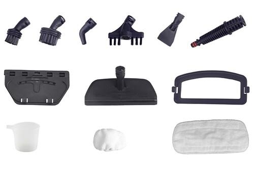 документация, комплект насадок, комплект щеток, скребок, тряпка для отпаривания, тряпка для пола