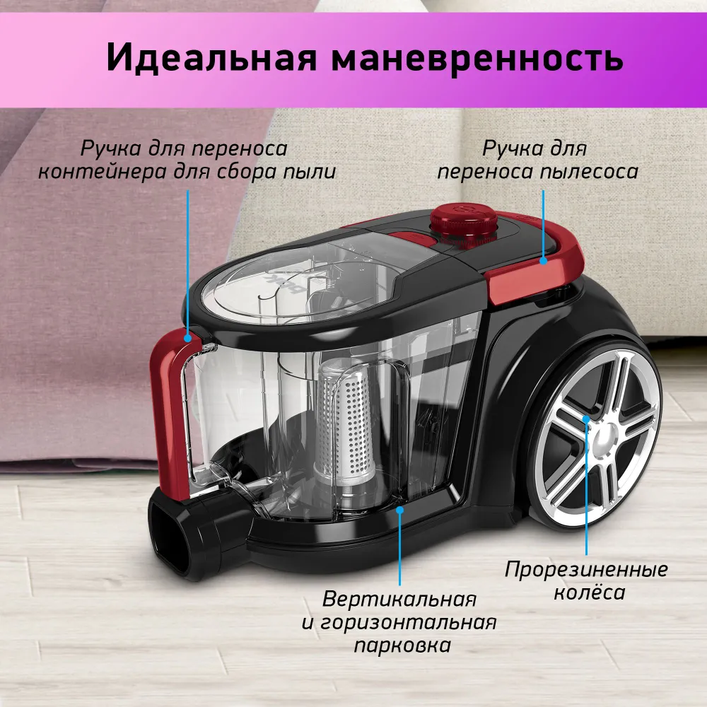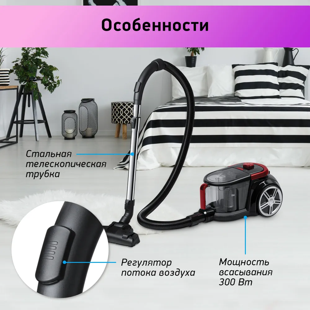 Особенности: Автоматическая смотка шнура, Регулировка мощности, Вертикальная парковка, Горизонтальная парковка
