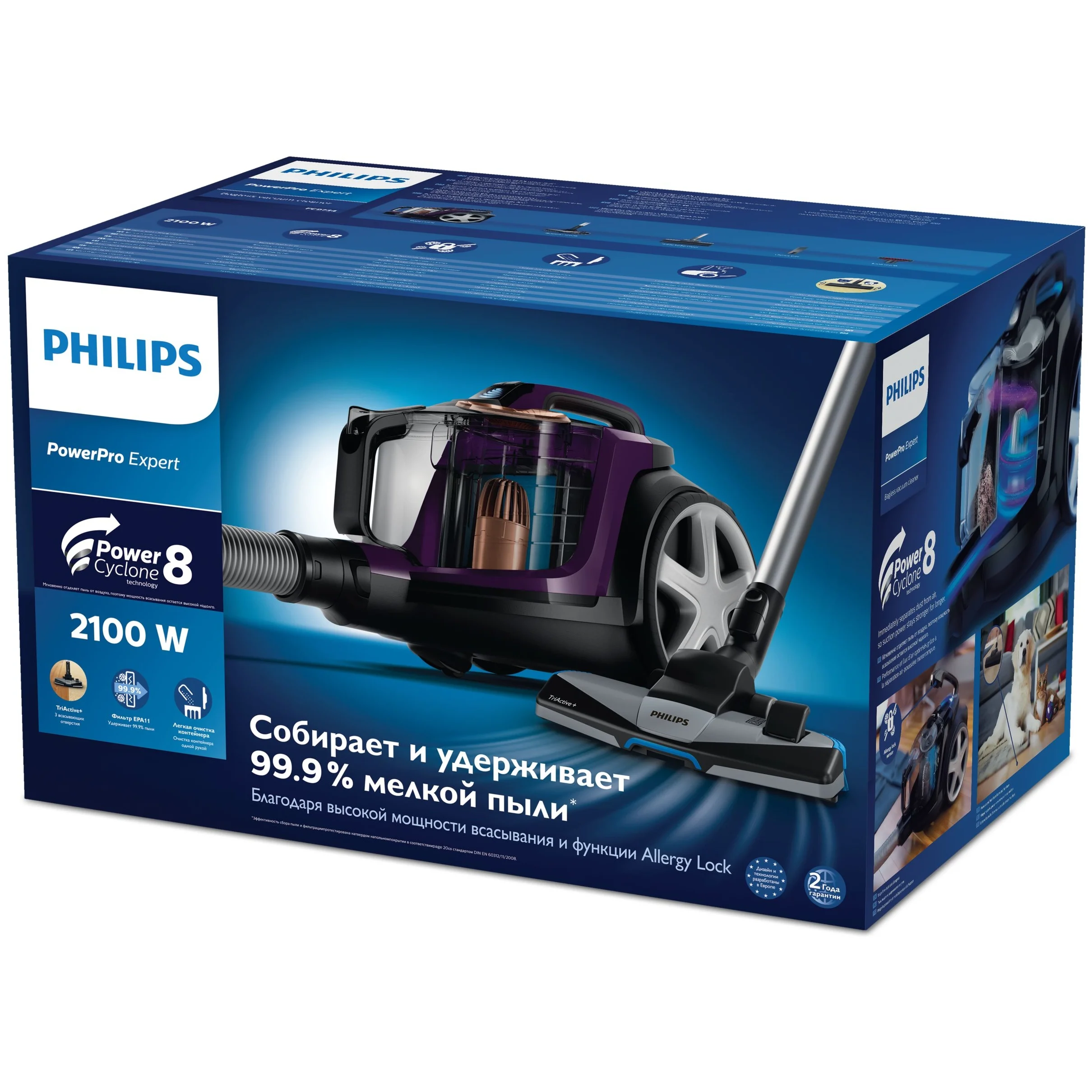 Насадки в комплекте: пол/ковёр TriActive+; малая, встроенная, щелевая, для уборки шерсти домашних животных