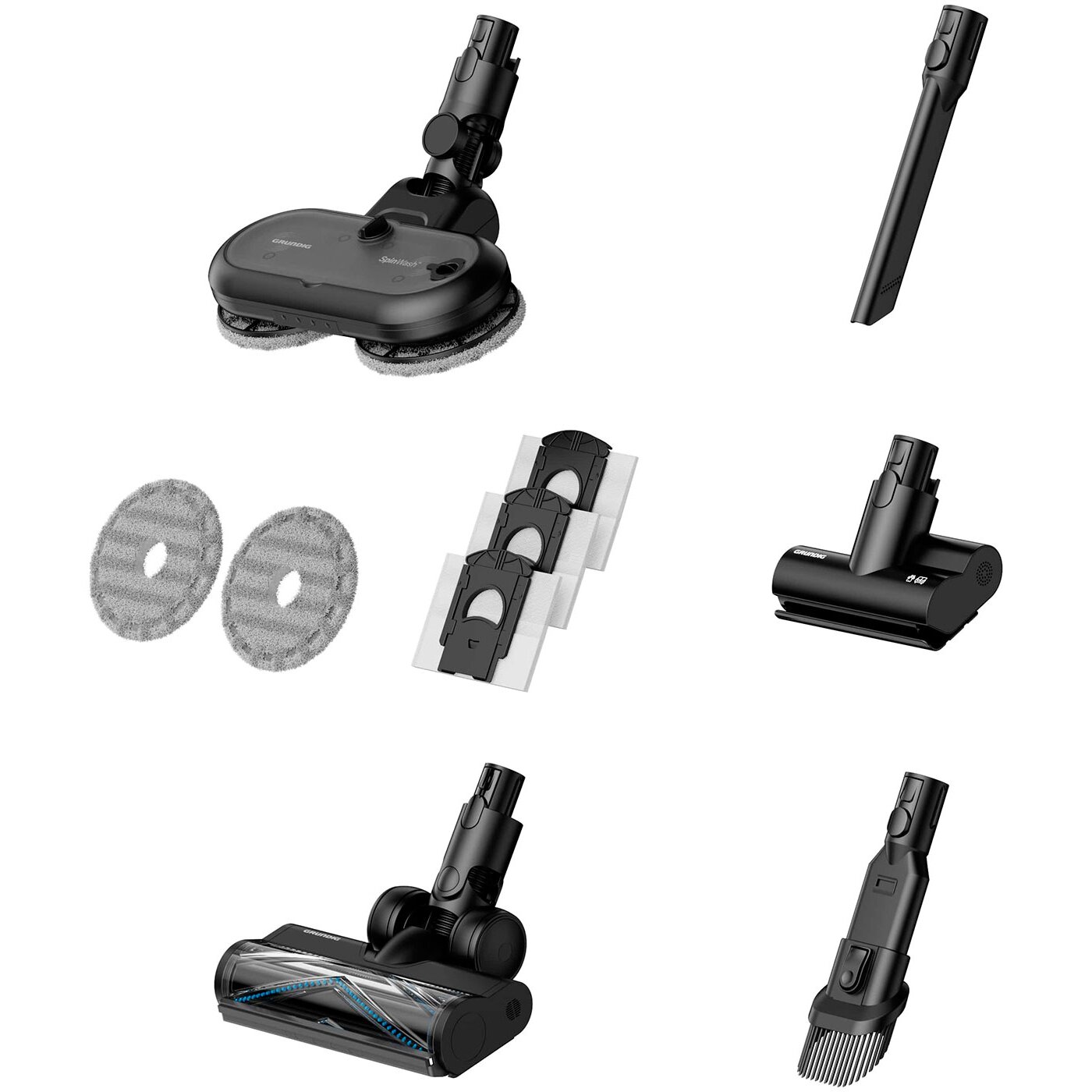 Насадки: электрощетка, мини-электрощетка, пол/ковер, для мягкой мебели, насадка из микрофибры, щелевая, для сбора шерсти