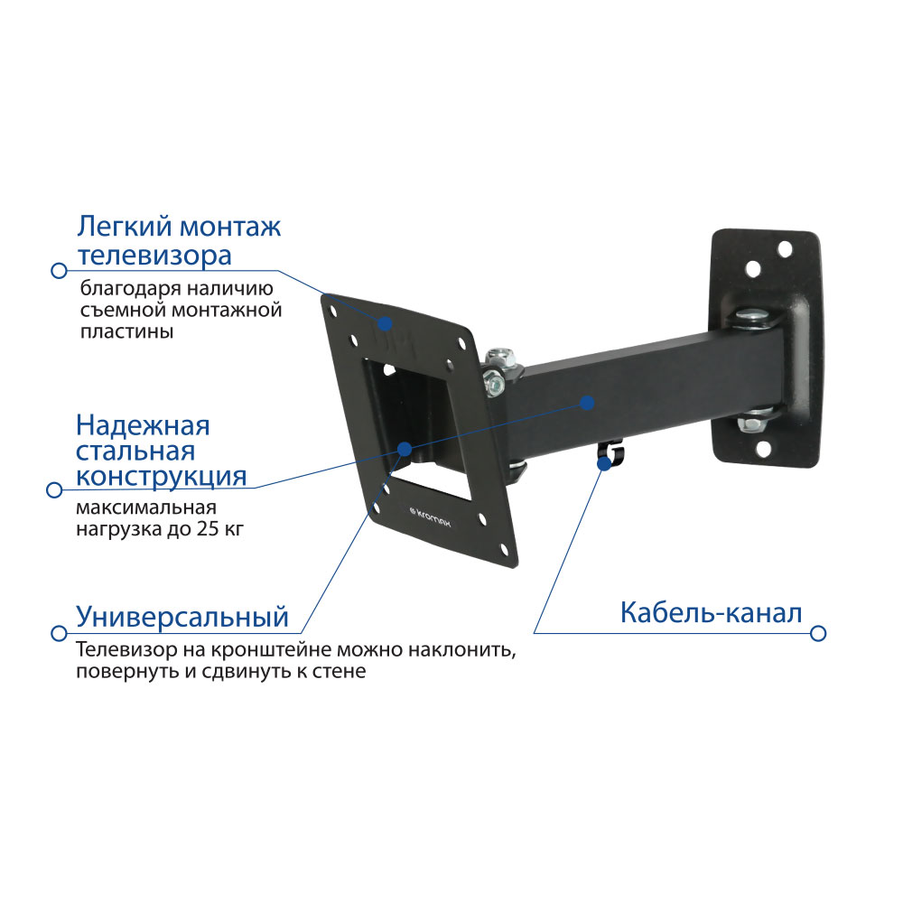 Регулировка: поворотно-выдвижной и наклонный