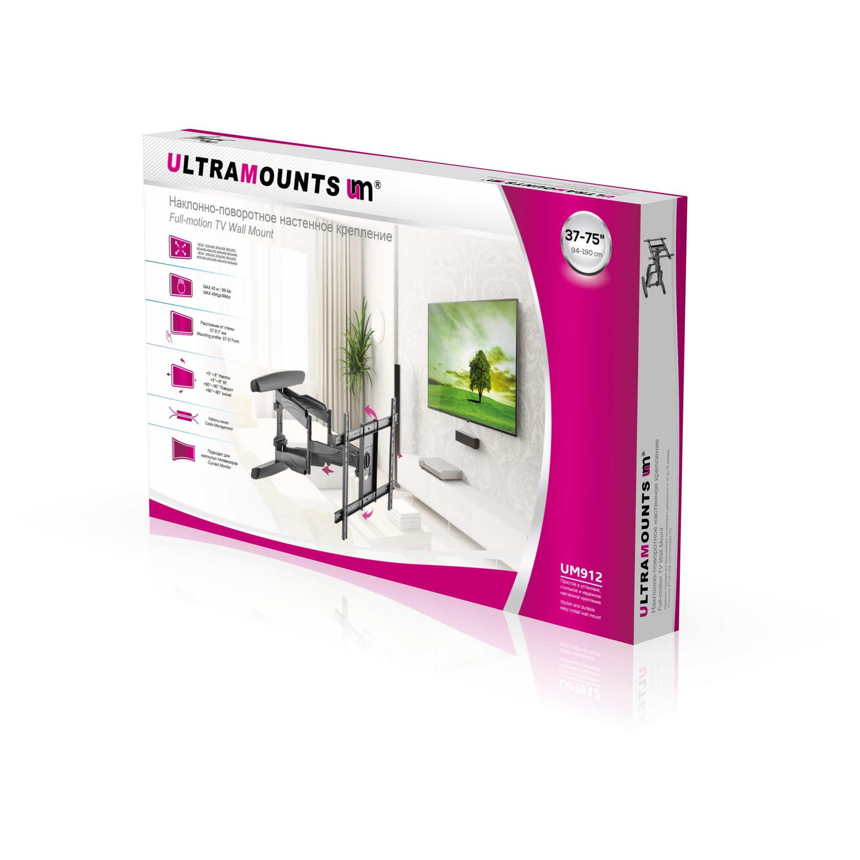 Диагональ экрана: 37" - 75"