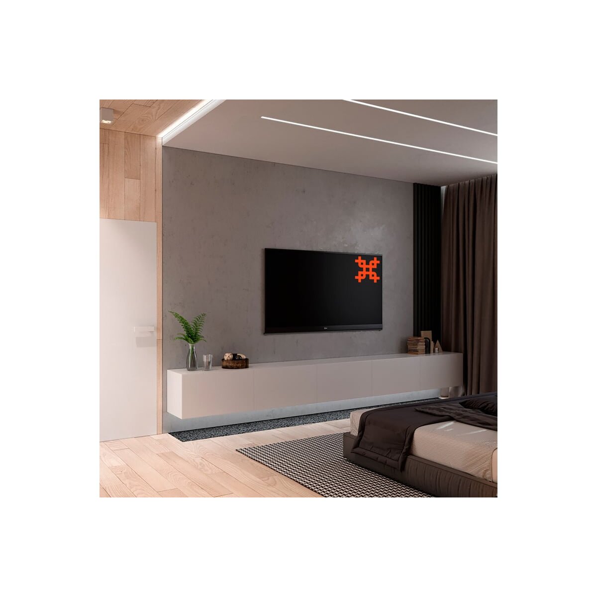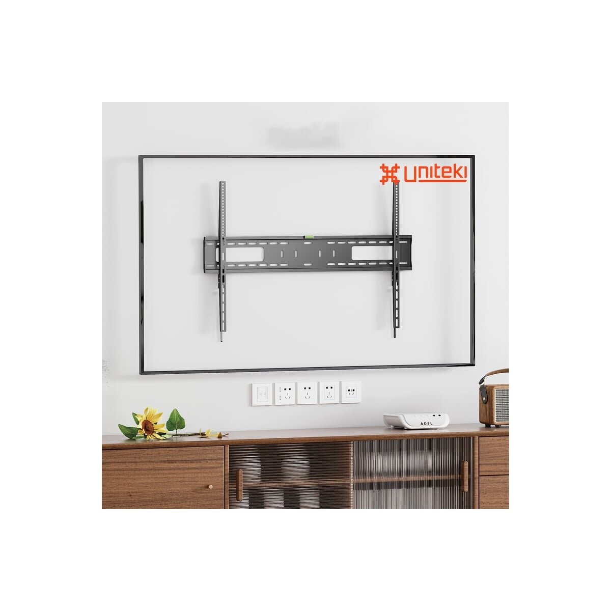 Кронштейн подходит для крепления панелей с множеством вариантов размеров VESA – от самых маленьких (200x200 мм) до самых больших (900x600 мм). В комплектацию кронштейна входит уровень. Он позволяет легко, ровно и быстро закрепить кронштейн на стене. Расстояние от стены составляет 30.5 мм, что придает кронштейну компактный и аккуратный внешний вид, делая его почти незаметным за вашей ТВ-панелью.