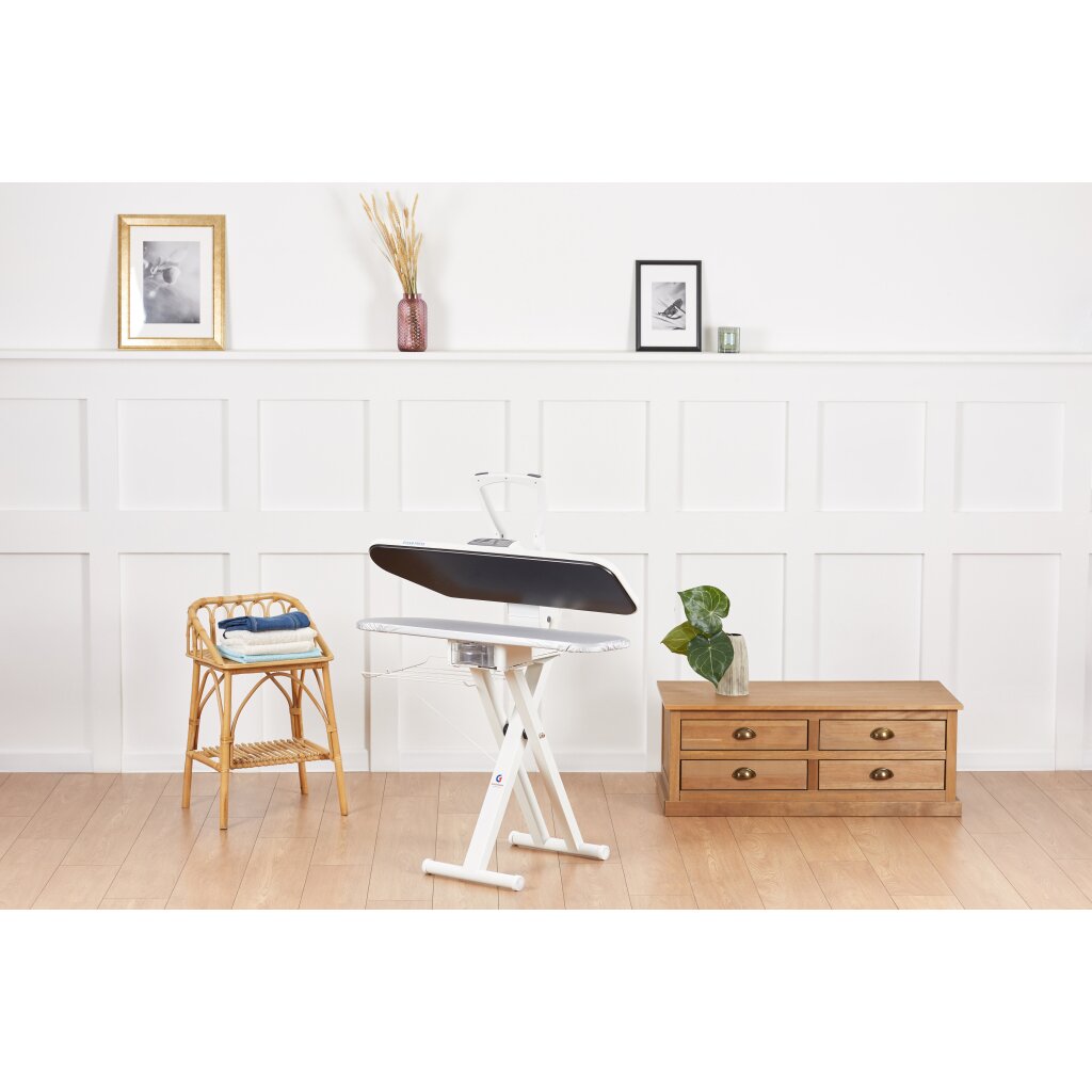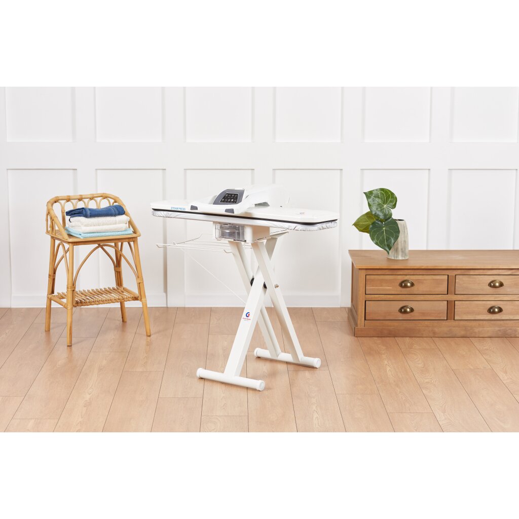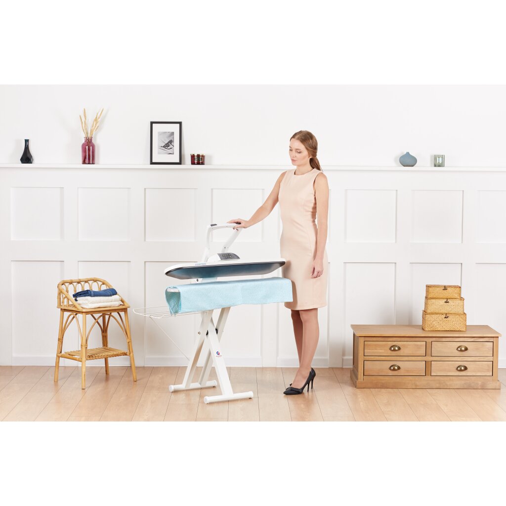 Используя этот гладильный пресс, вы можете быть уверены, что ваша одежда не испортится, поскольку в прибор встроена электронная система контроля, которая препятствует перегреву гладильной поверхности. Большая гладильная поверхность и большой угол открытия пресса позволяет без труда размещать на нем крупные вещи, складывать одежду после глаженья без риска обжечься.