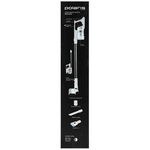 Polaris PVCS 0725 оснащен 3 сменными насадками – турбощетка с электроприводом, щетка для мебели и щелевая насадка. На одном заряде аккумулятор способен работать автономно около 40 минут. Устройство для восстановления заряда входит в комплект.