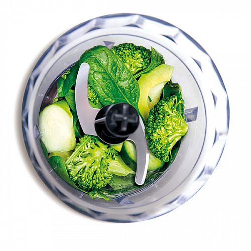 С помощью ножа из нержавеющей стали блендер с насадкой измельчитель поможет вам измельчить овощи, фрукты и даже орехи.